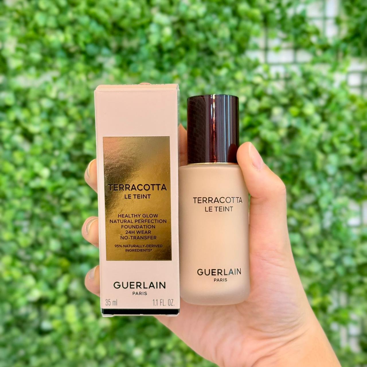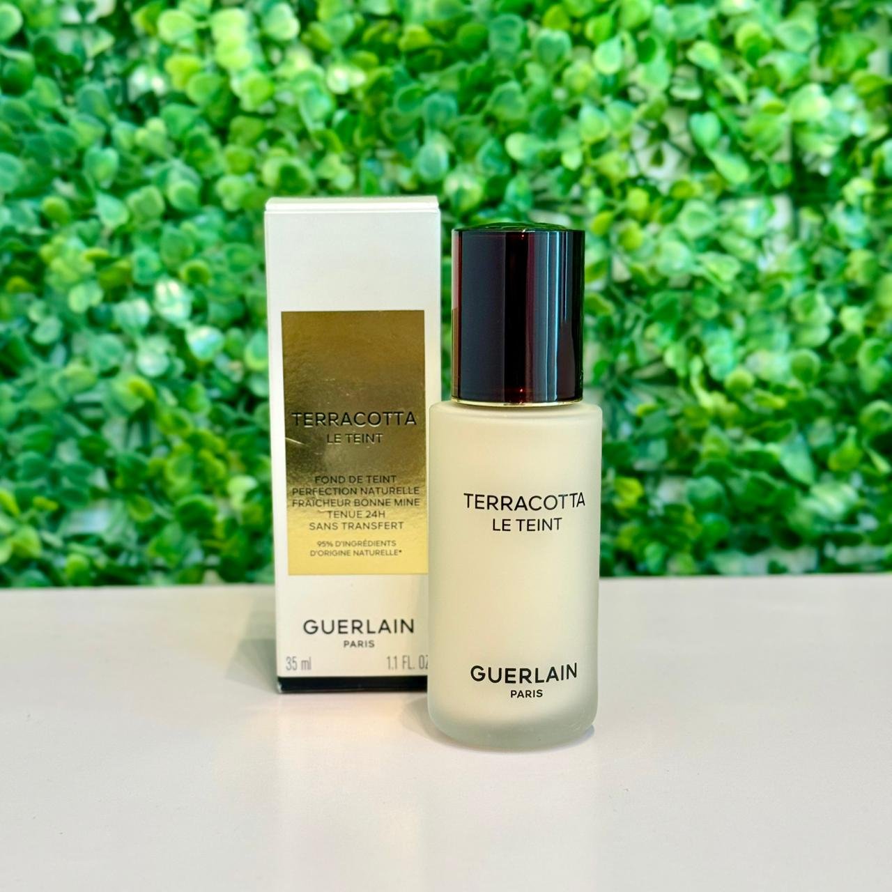 A Base Guerlain Terracotta Le Teint é uma base líquida de luxo descrita na embalagem como um “Fond de Teint Perfection Naturelle” (Base de Perfeição Natural) que oferece um brilho saudável e frescor e boa aparência (Fraîcheur Bonne Mine). A fórmula promete longa duração de 24 horas e é sem transferência (No-Transfer). É composta por 95% de ingredientes derivados naturalmente. A cor 1N Neutral é um tom neutro, geralmente indicado para peles claras a médias. O volume do produto é de 35mL (1.1 FL. OZ.).