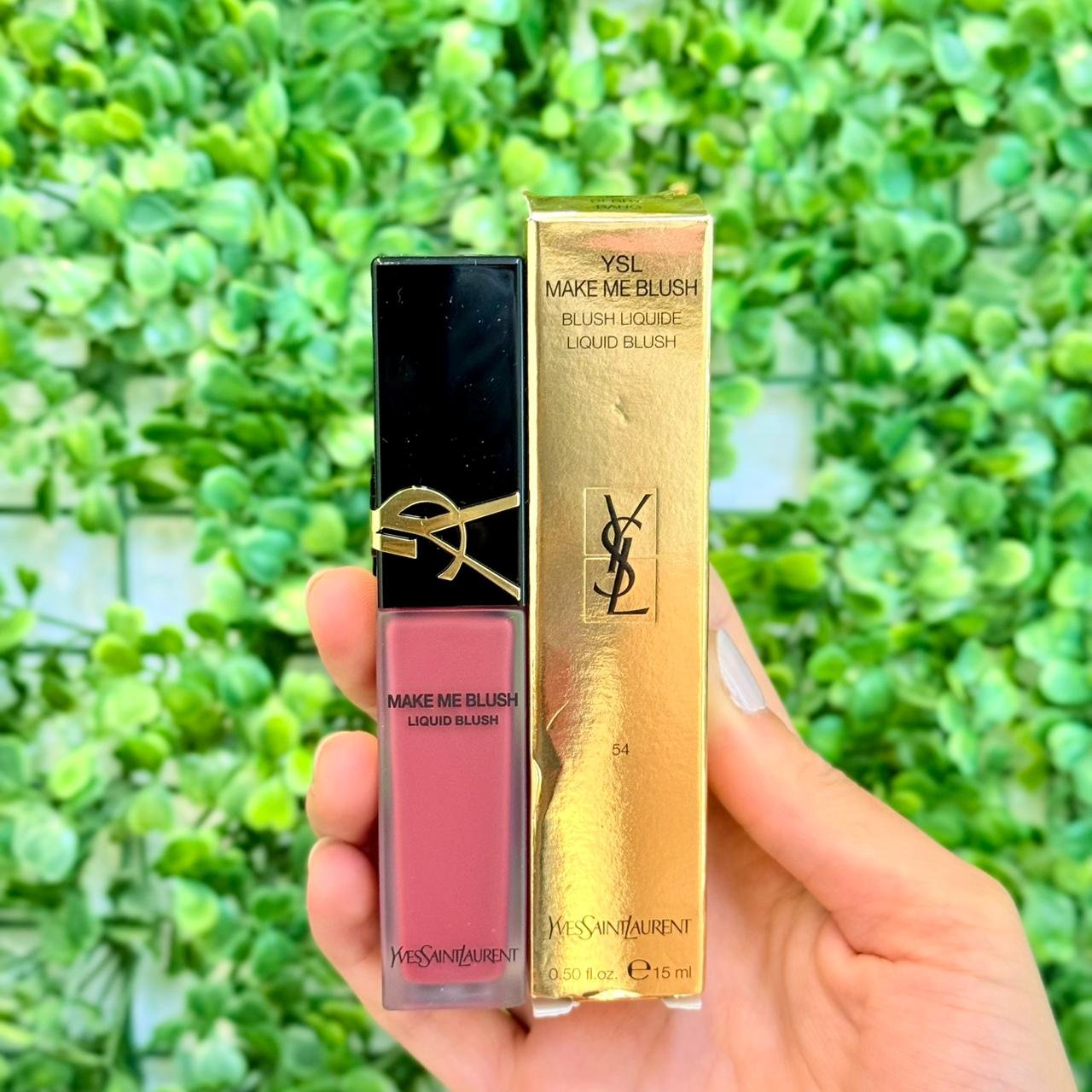 O YSL Make Me Blush Liquid Blush é um produto de maquiagem de luxo que oferece uma cor intensa e edificável com um acabamento natural e radiante. A embalagem o descreve como um “Blush Liquide”, com fórmula leve e fácil de espalhar para um efeito de cor saudável nas maçãs do rosto. A cor 54 Berry Bang é um tom vibrante de rosa ou berry (fruta vermelha), ideal para quem busca um toque ousado e moderno. O volume do produto é de 15mL (0.50 FL OZ).