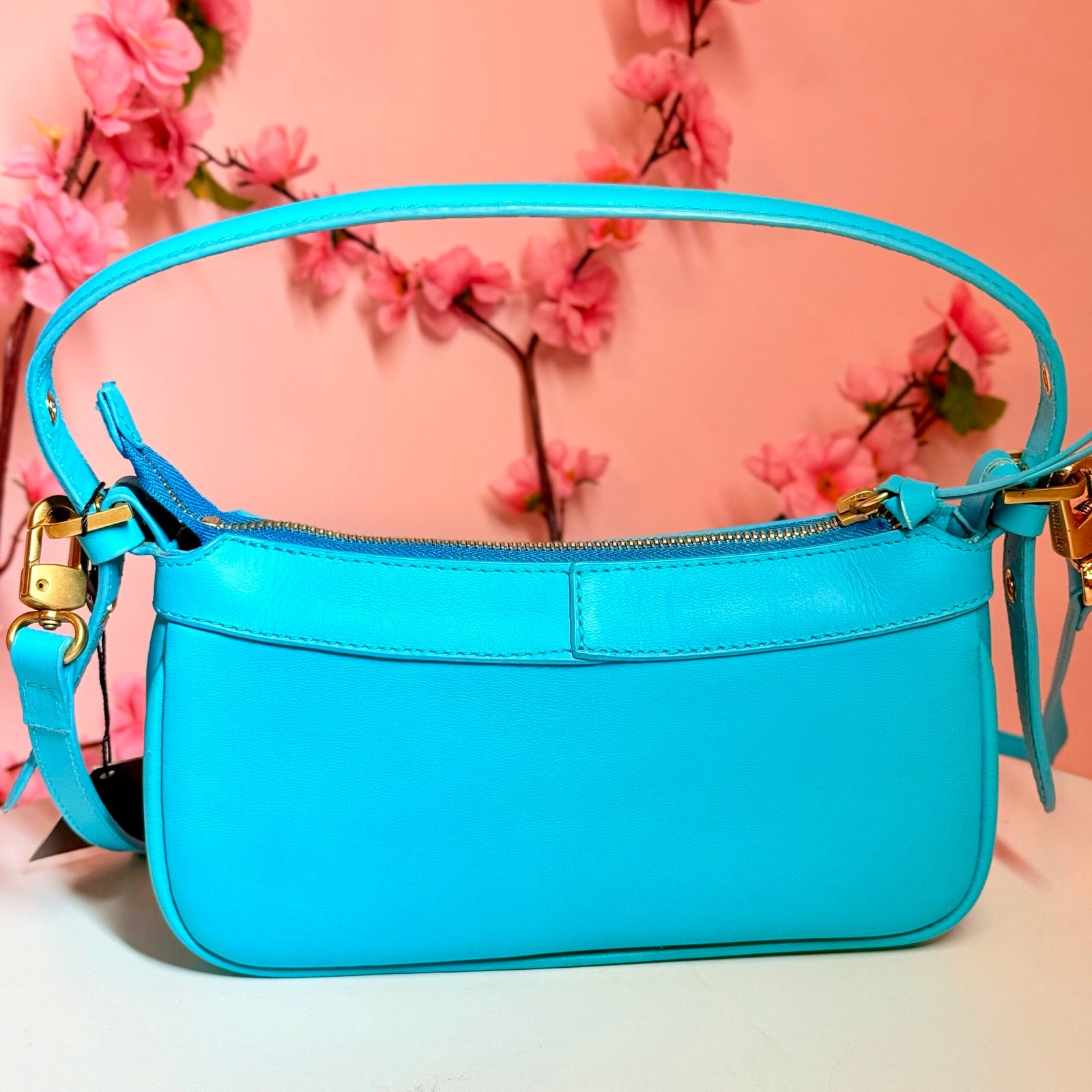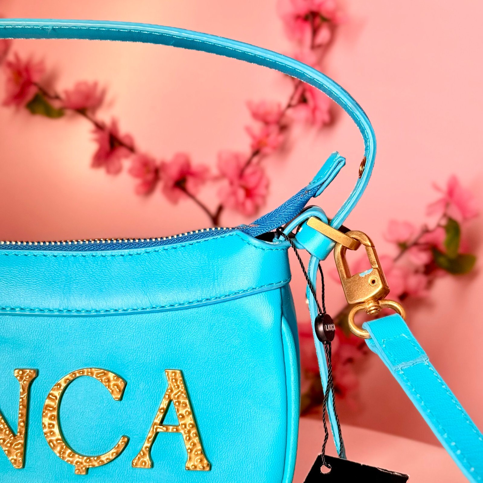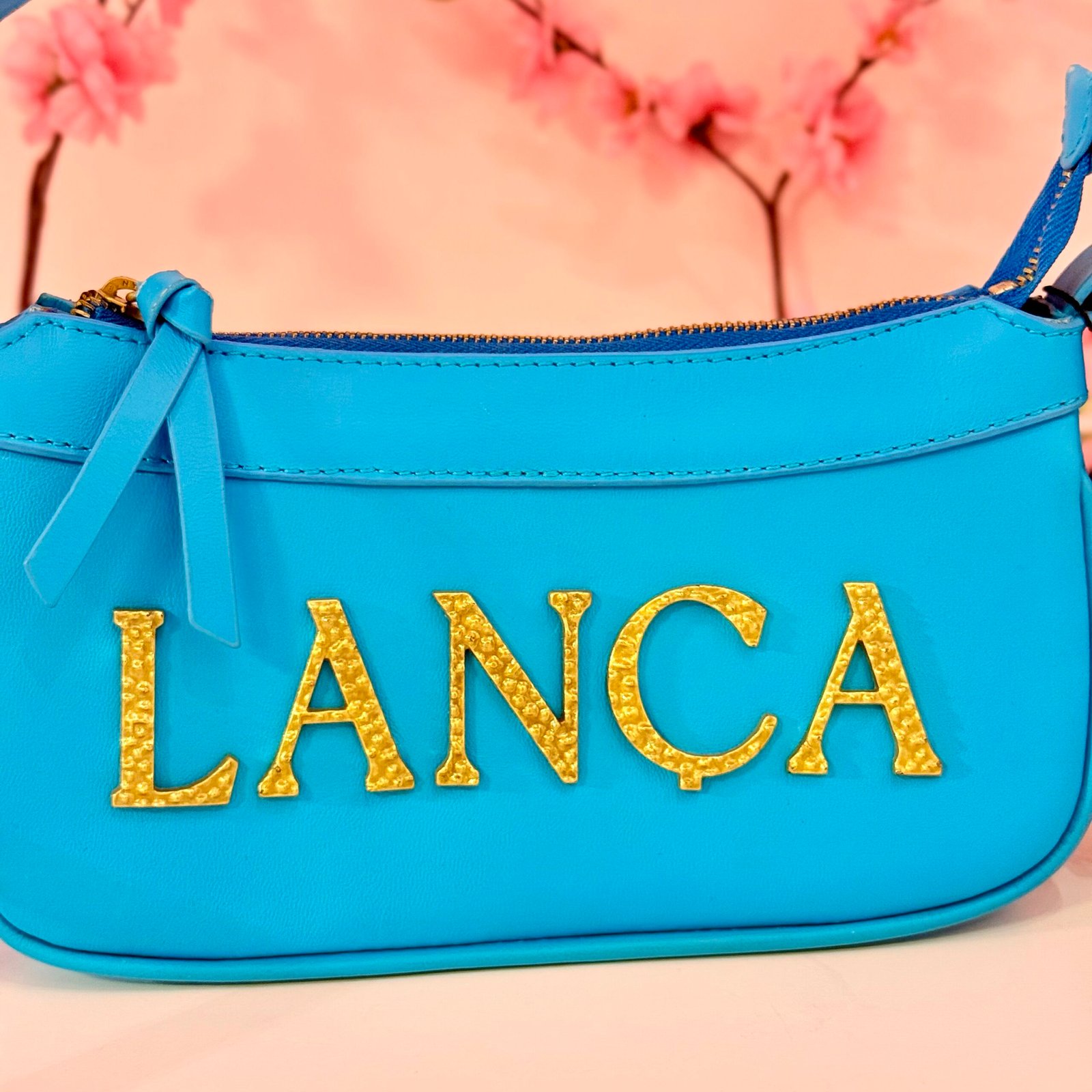 Esta Bolsa de ombro Transversal da marca Lança Perfume é um item de acessório de design moderno, ideal para quem busca uma peça divertida e trendy. O modelo apresenta um formato retangular, com alça regulável, e um acabamento em material liso na cor Azul Turquesa, destacando as letras LANÇA em metal dourado e texturizado na parte frontal. É um item essencial para um visual ousado e cool, combinando o design prático e compacto com a cor vibrante e o brilho das letras em relevo