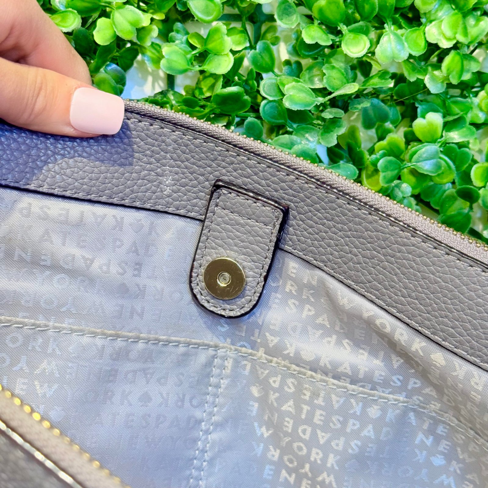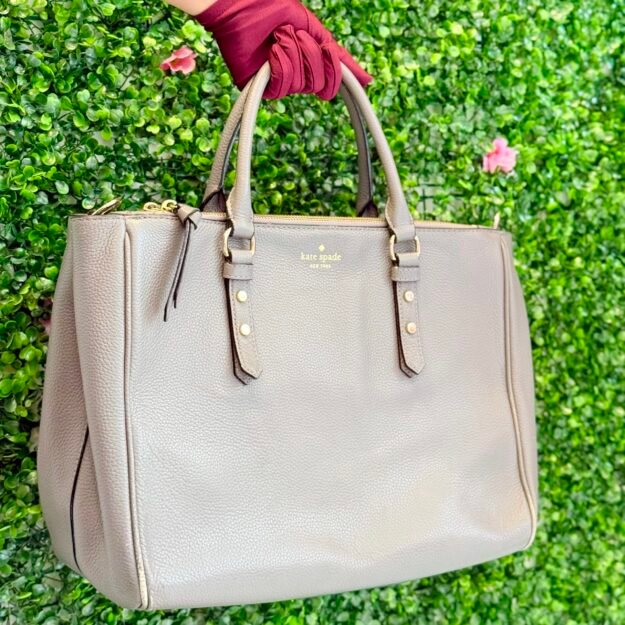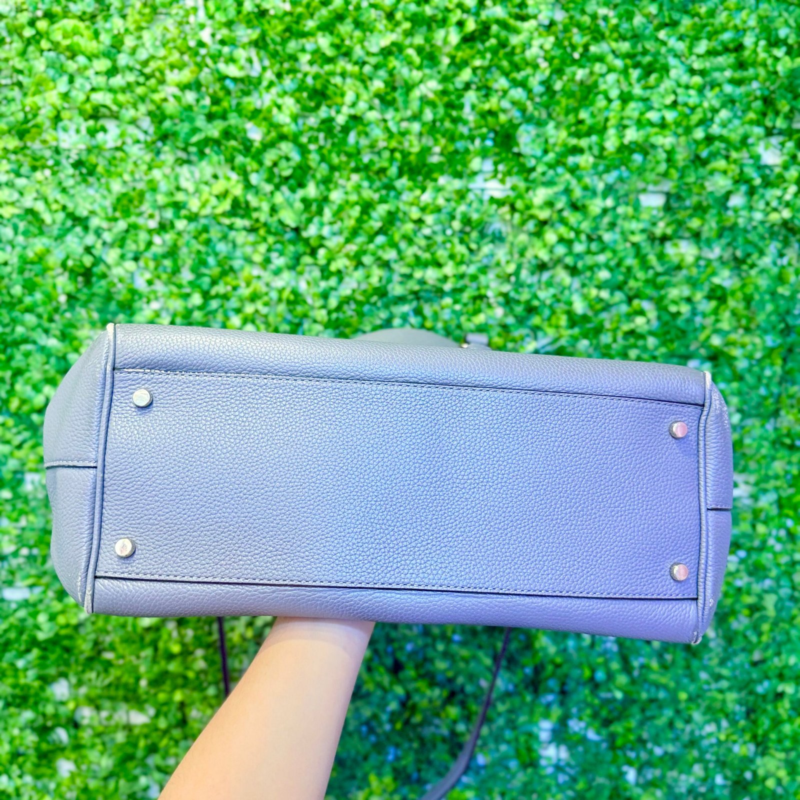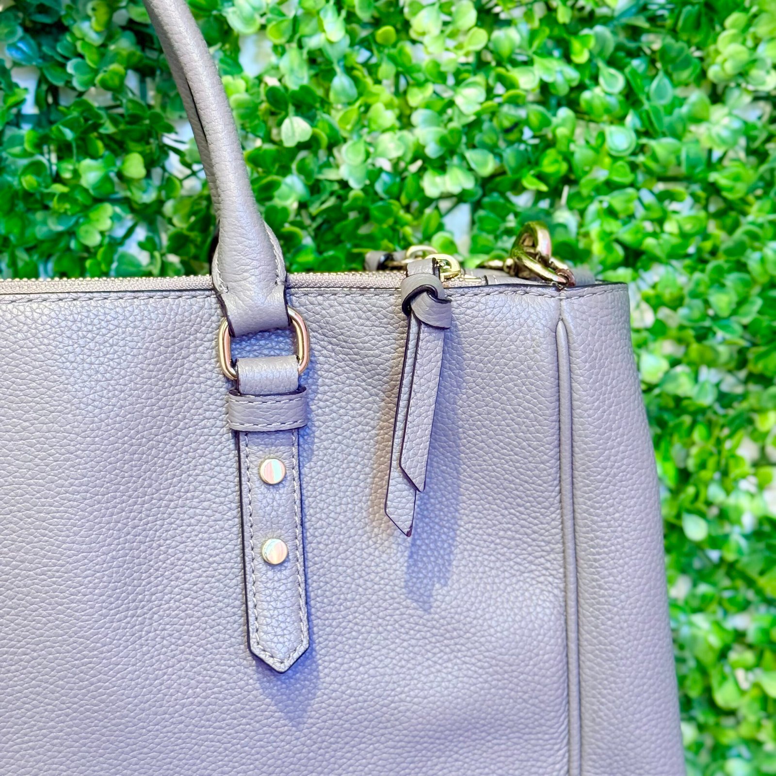 É o equilíbrio perfeito entre sofisticação e funcionalidade. Confeccionada em couro legítimo granulado (pebble grain) na elegante cor Cinza Lavanda/Taupe, ela apresenta design estruturado e detalhes metálicos dourados. É ideal para carregar todos os seus essenciais de trabalho ou lazer com muito estilo. A bolsa se encontra em excelente estado de conservação (Seminova).