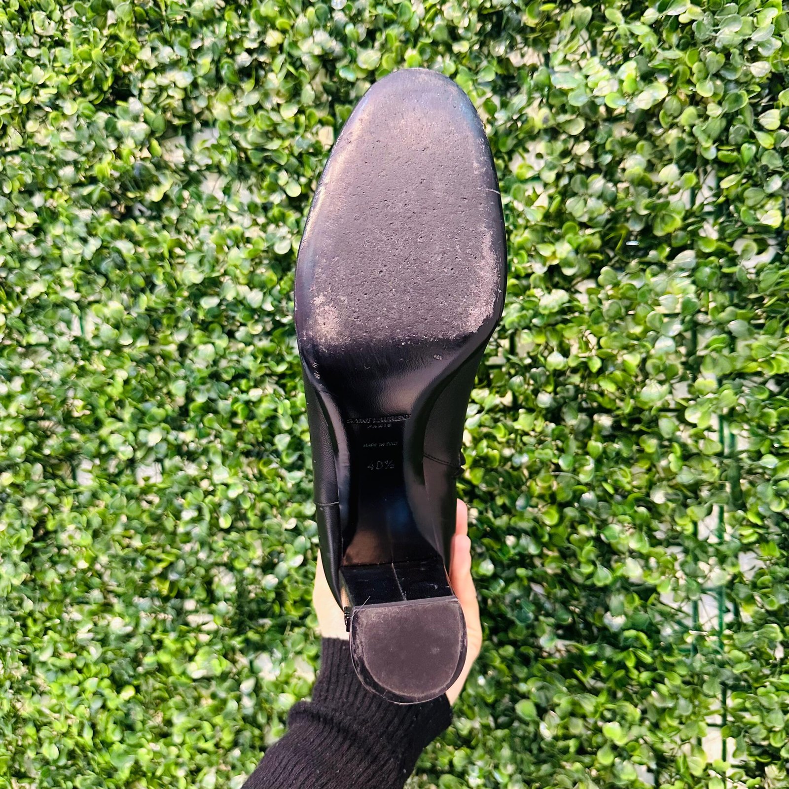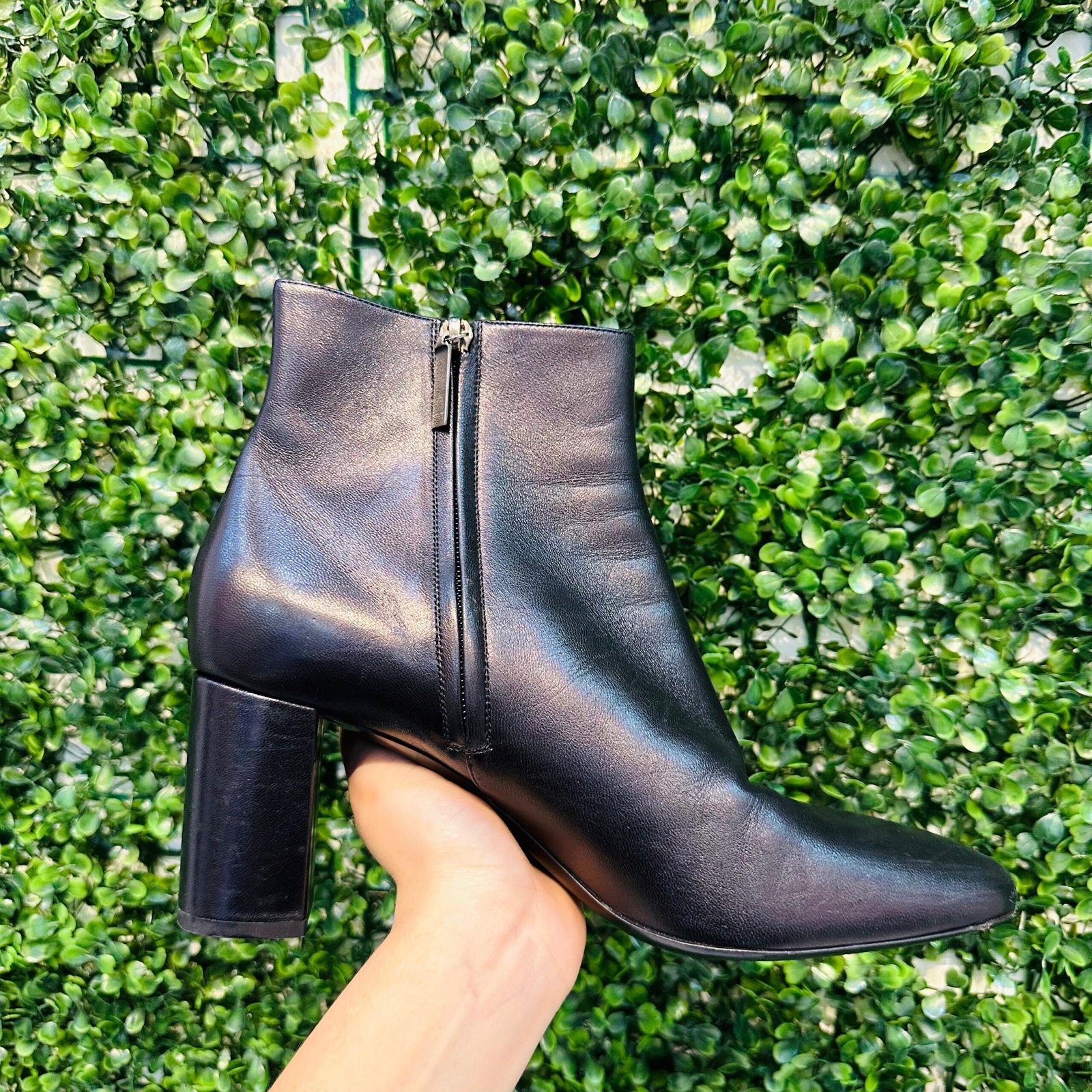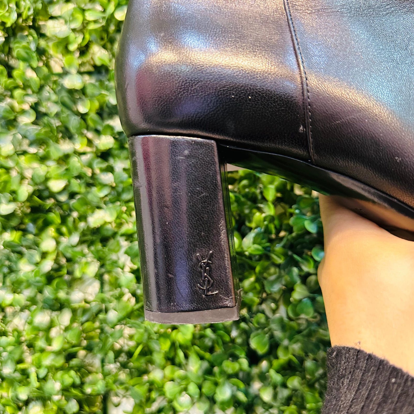 A elegante Bota Saint Laurent (YSL) Ankle Boot é a peça chave para um visual sofisticado e atemporal. Confeccionada em couro legítimo preto macio, apresenta design de bico fino e salto bloco confortável, com o discreto logo YSL na parte traseira. A bota se encontra em excelente estado de conservação (Seminovo).