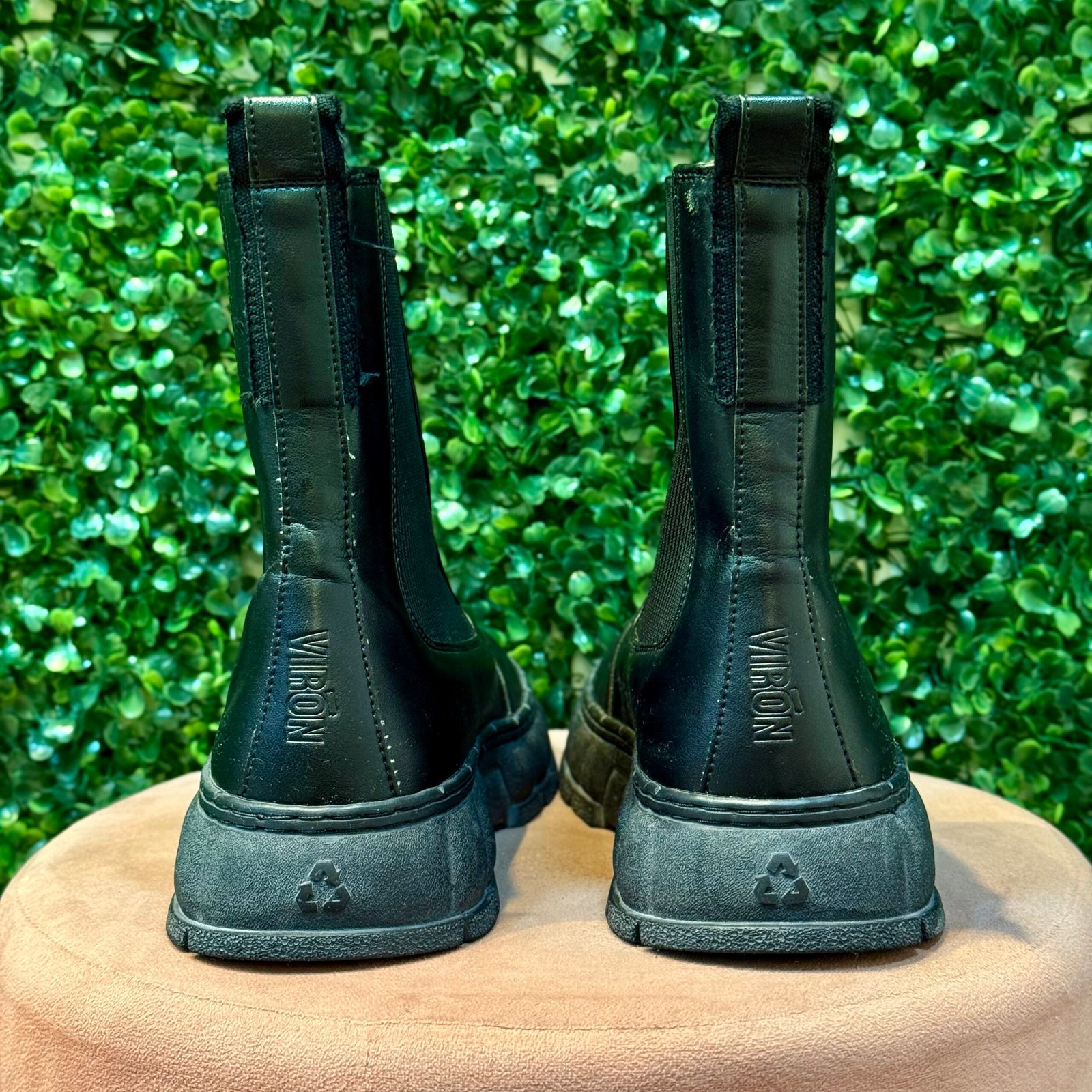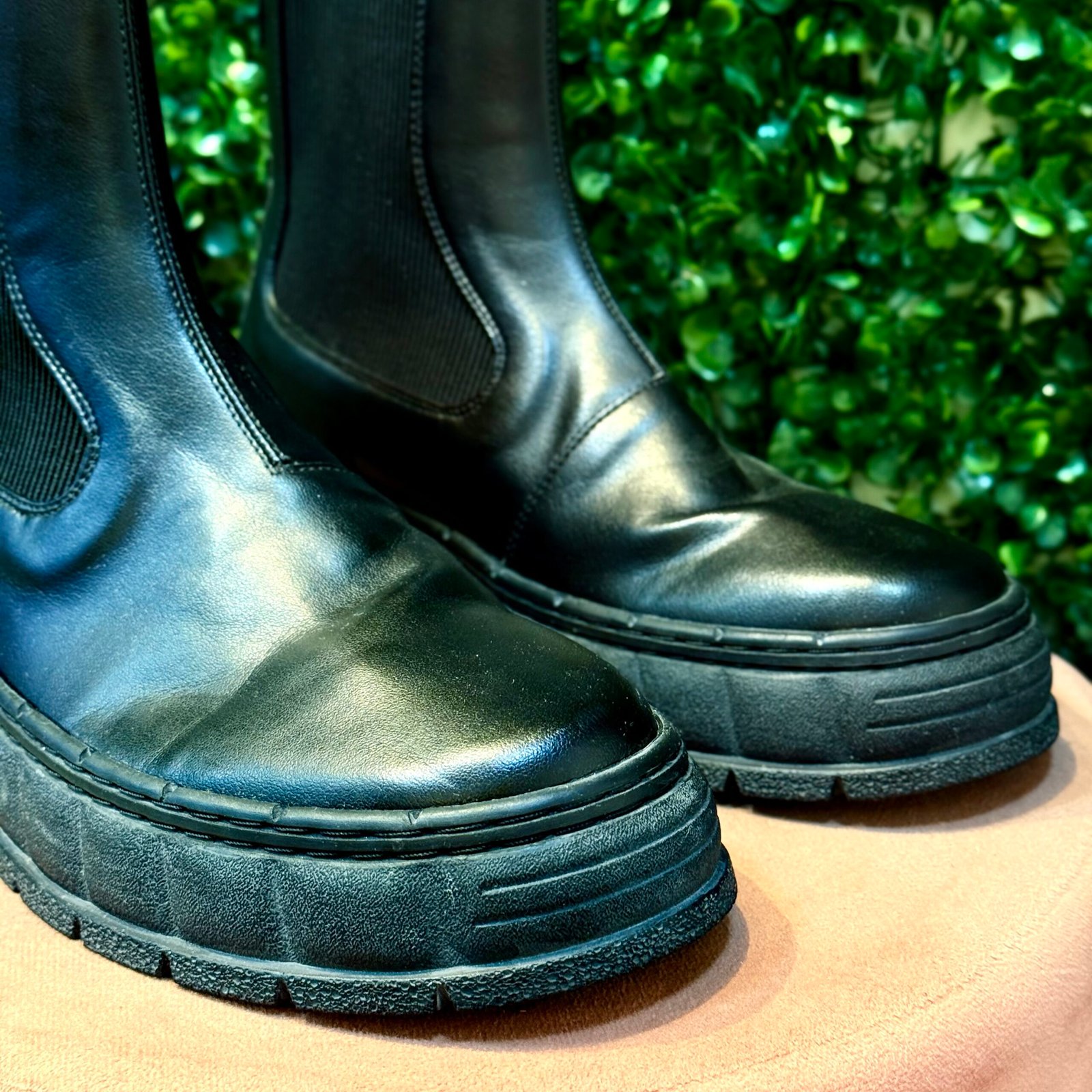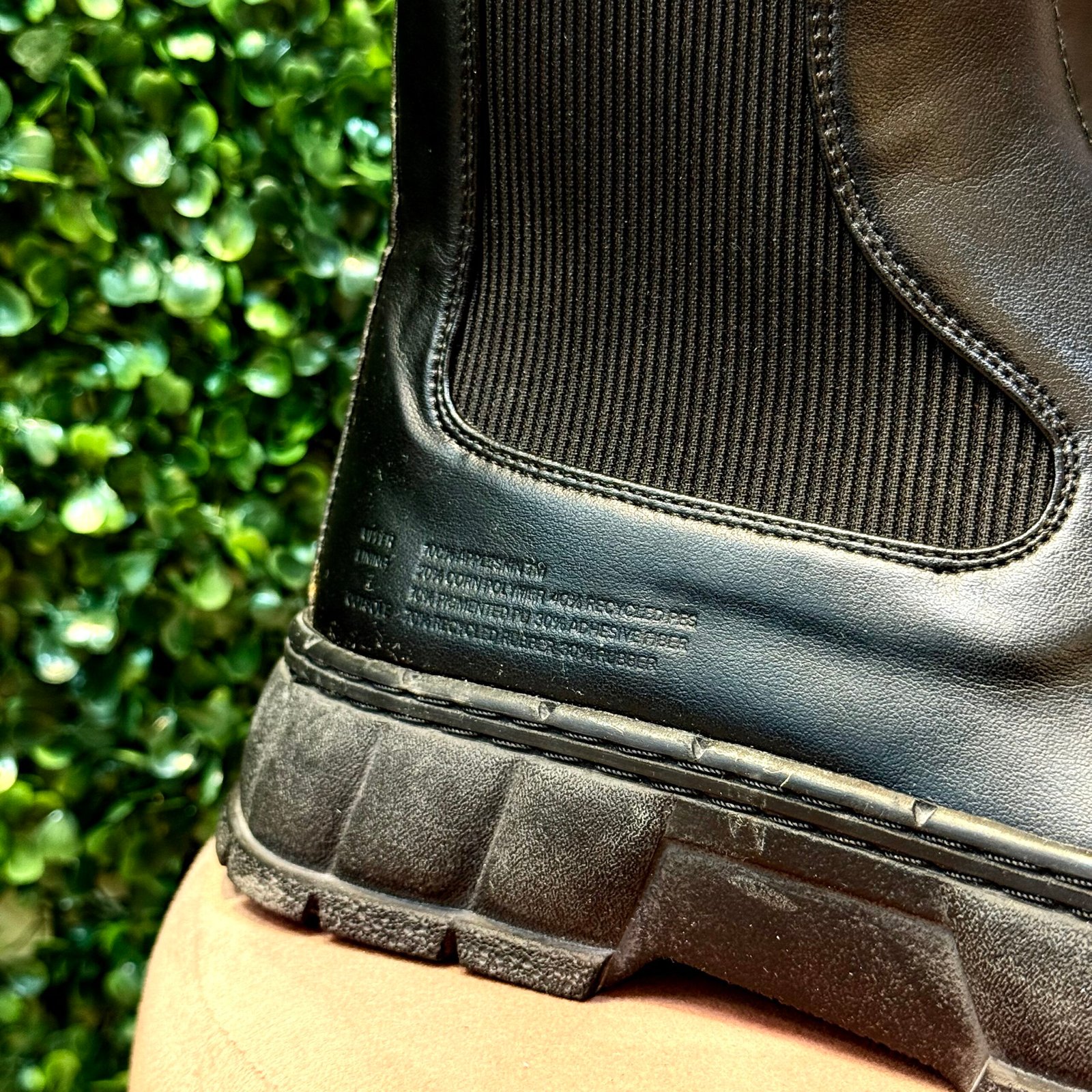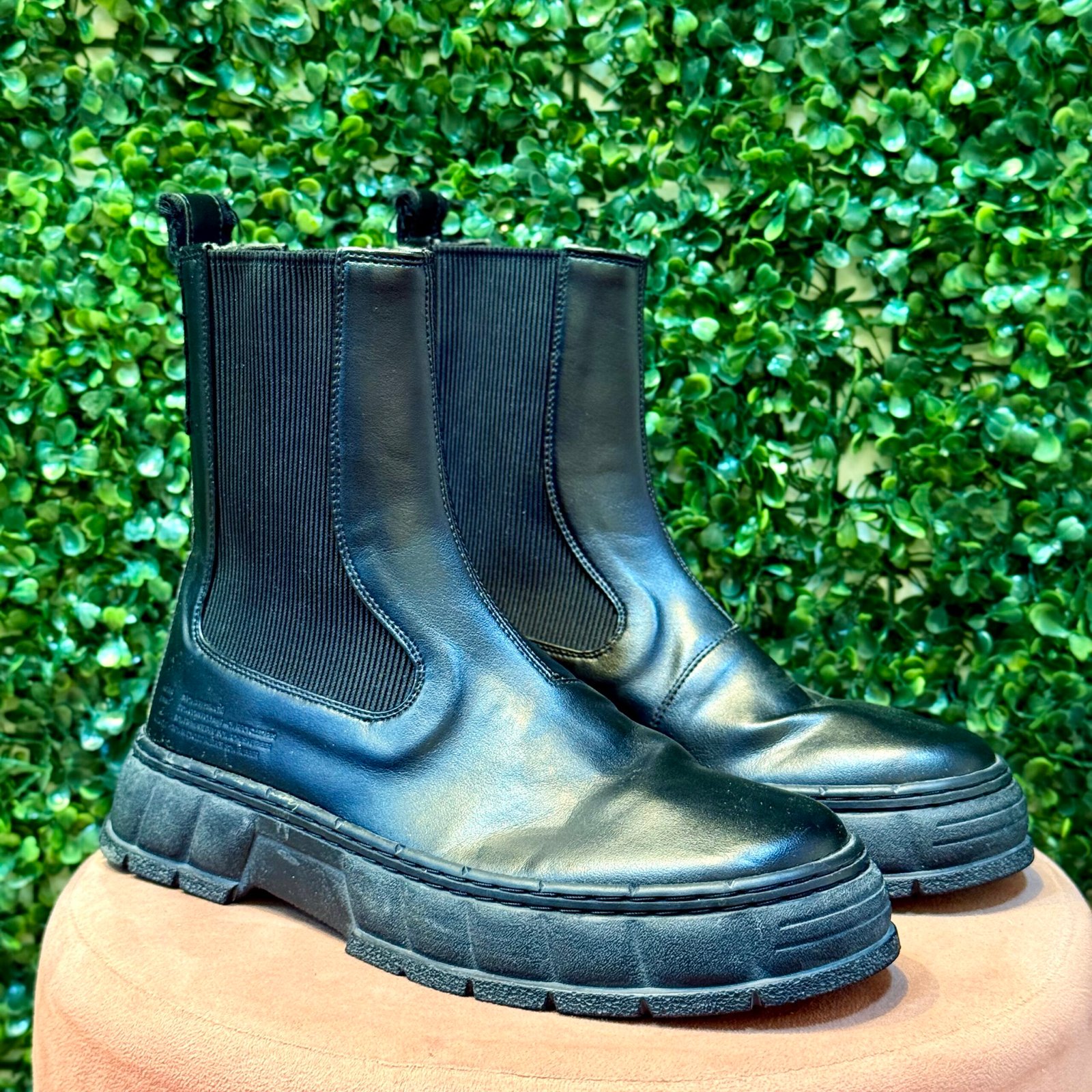 O Coturno Virón é a peça statement que une estilo robusto e consciência ecológica. Confeccionado em alta qualidade na cor Preta, ele apresenta o clássico design de Chelsea Boot com elásticos laterais e puxador. O grande destaque fica por conta do solado tratorado (plataforma), que garante estilo, estabilidade e aderência. É ideal para looks modernos, urbanos e de inverno. O coturno se encontra em excelente estado de conservação (Seminovo).