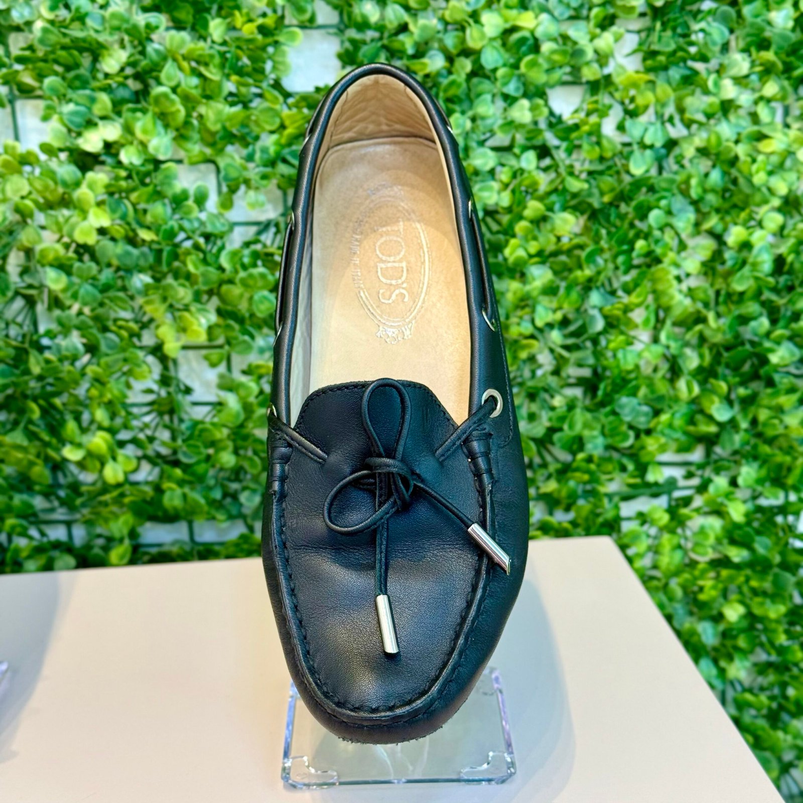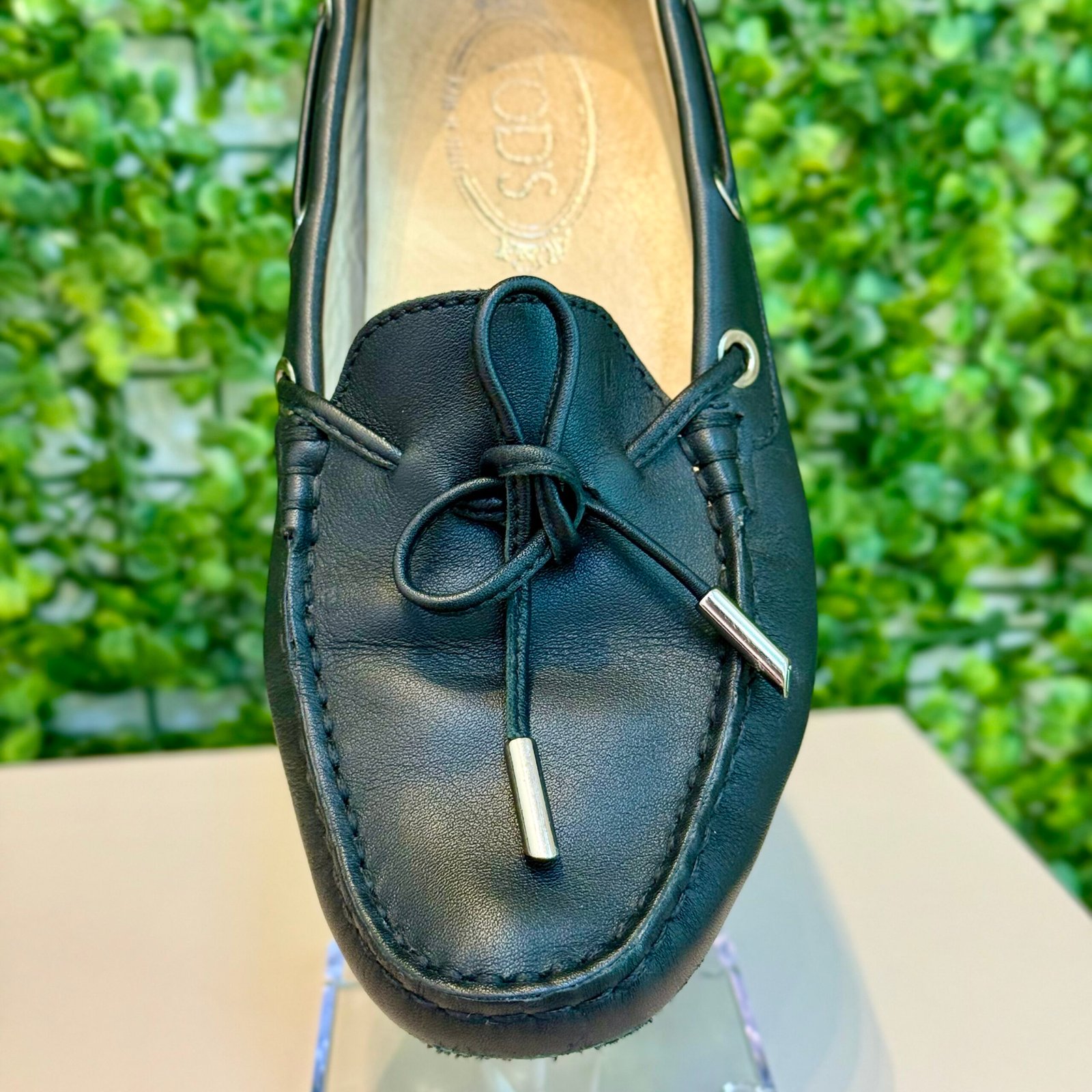 Detalhes da Peça: Numeração na etiqueta interna 36½ (EUR), que corresponde aproximadamente ao Tamanho 34.5 (BR). Peça original da marca Tod’s, com o clássico detalhe do cadarço frontal em couro e as pontas metálicas.