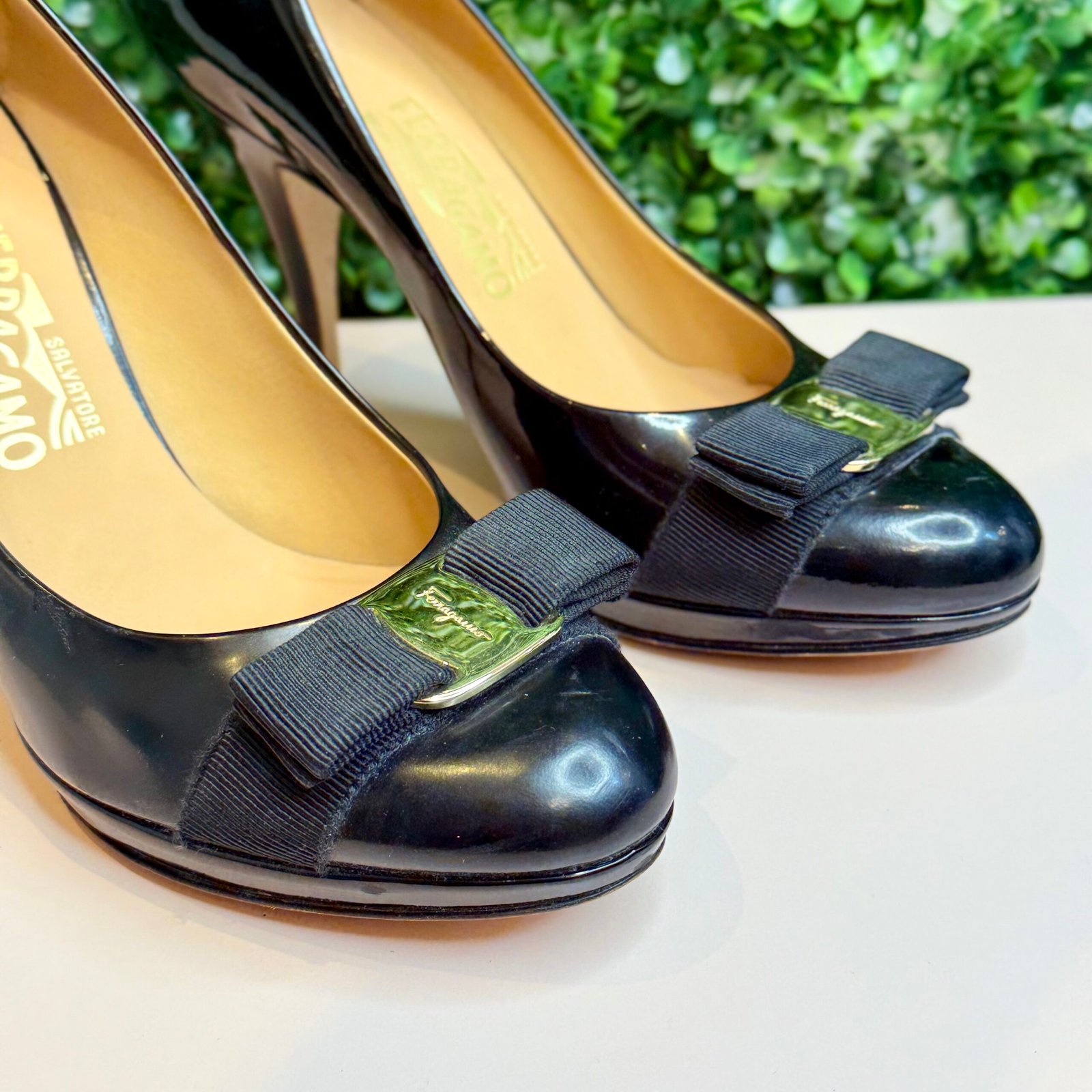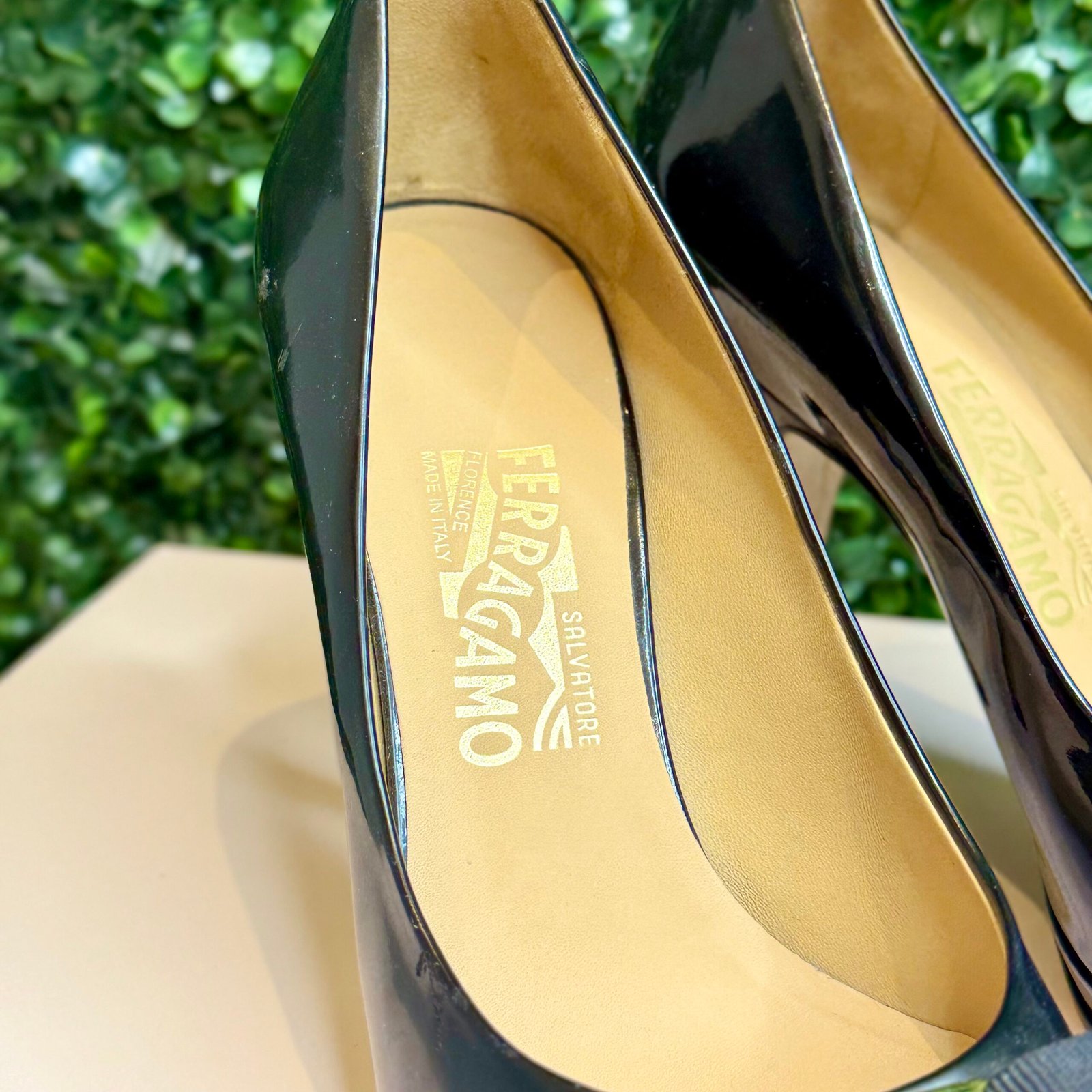 O Scarpin da Salvatore Ferragamo é um ícone atemporal de luxo, elegância e design italiano. Confeccionado em couro envernizado de alto brilho, na cor preta intensa, esta peça é sinônimo de sofisticação no guarda-roupa.