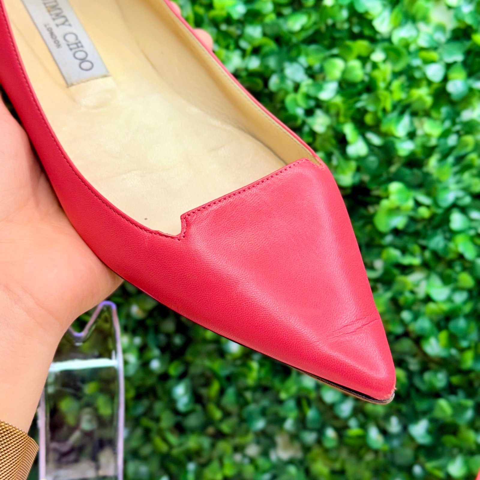 A Sapatilha Jimmy Choo é uma peça de luxo que equilibra o design clássico com uma atitude vibrante. Confeccionada em couro envernizado de alto brilho, ela possui um marcante e sedutor tom de Vermelho Intenso.