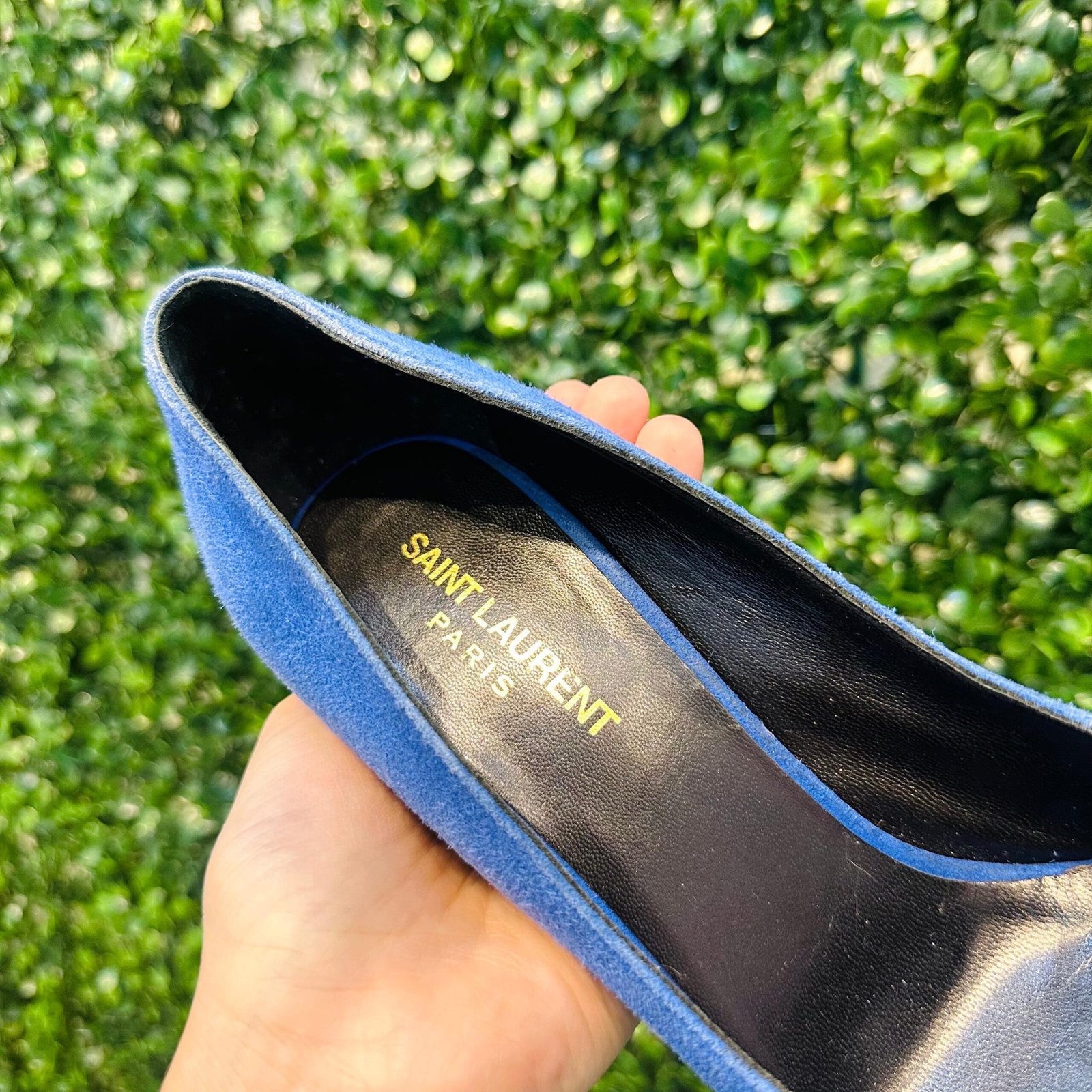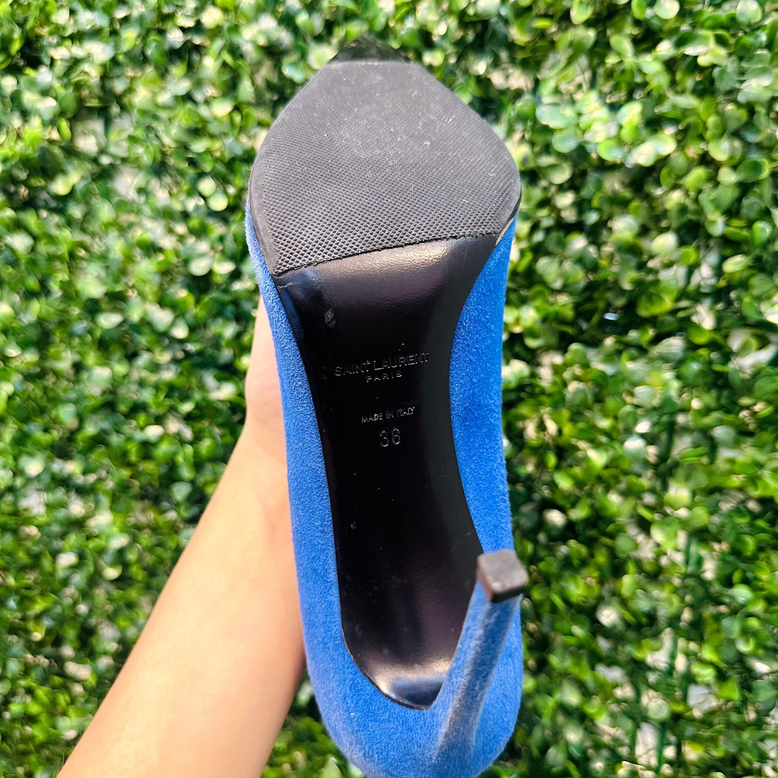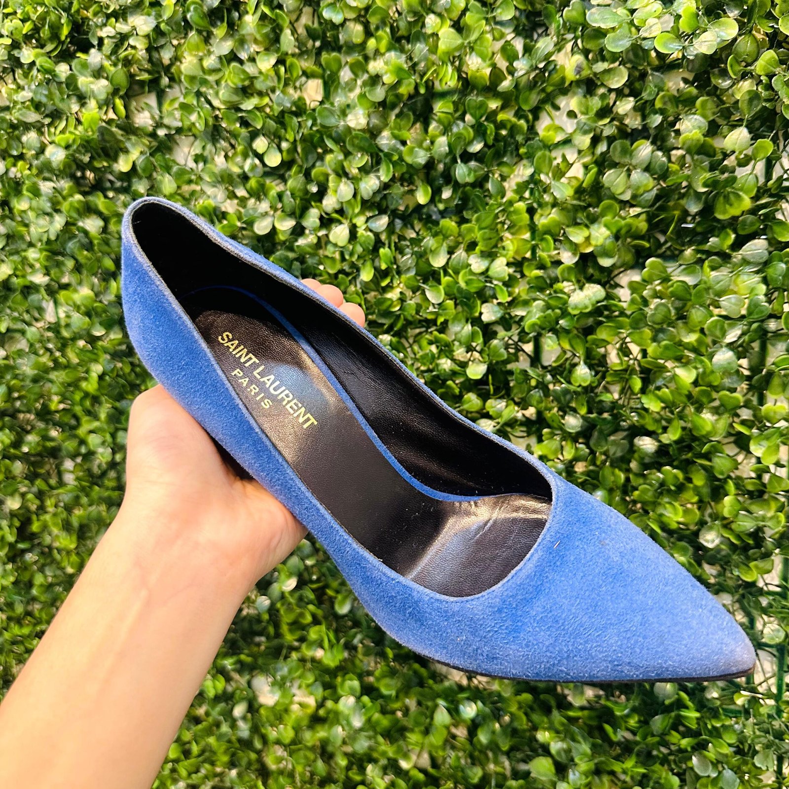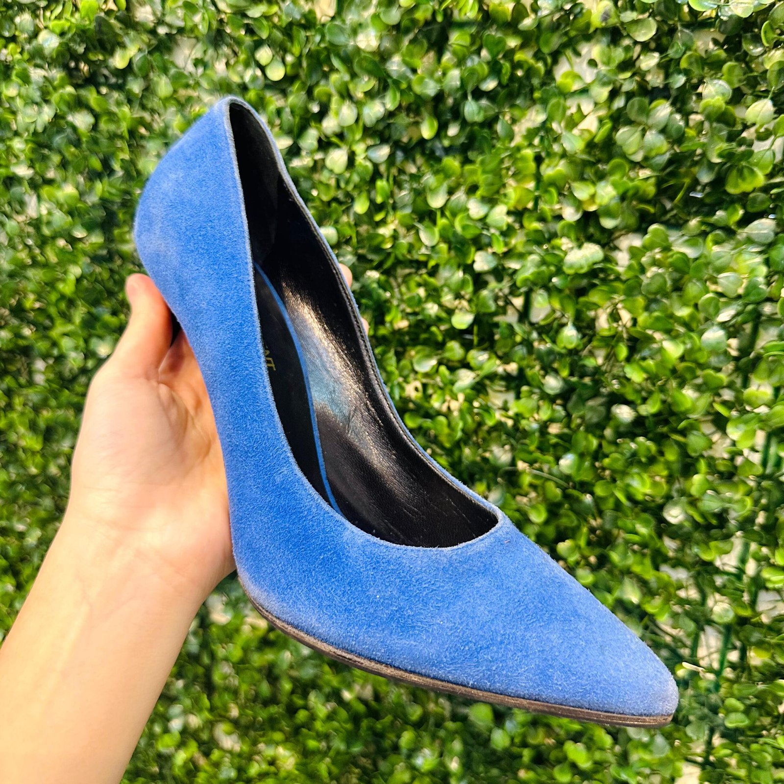 O deslumbrante Scarpin Saint Laurent é uma peça de alto impacto, confeccionada em camurça legítima na vibrante cor azul. O modelo clássico de bico fino e salto agulha fino garante uma silhueta alongada e elegante, sendo perfeito para ocasiões especiais. O scarpin se encontra em excelente estado de conservação (Seminovo).